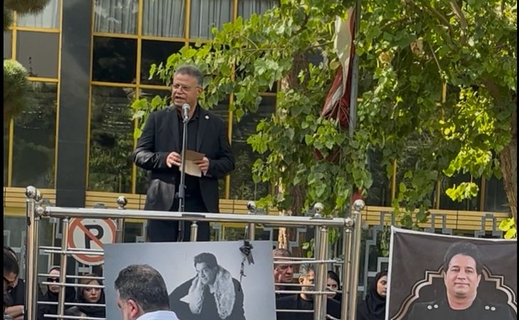 سخنرانی و تسلیت رئیس هیات مدیره انجمن صنفی هنرمندان موسیقی ایران درمراسم هنرمند محبوب (امید جهان)
