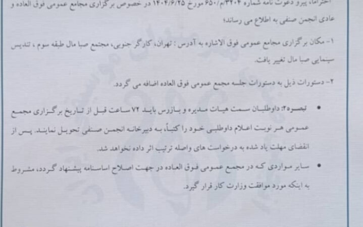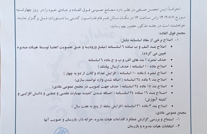 • (اگهی دعوت مجمع عمومی انجمن صنفی از اعضا) اکتبر 15, 2022